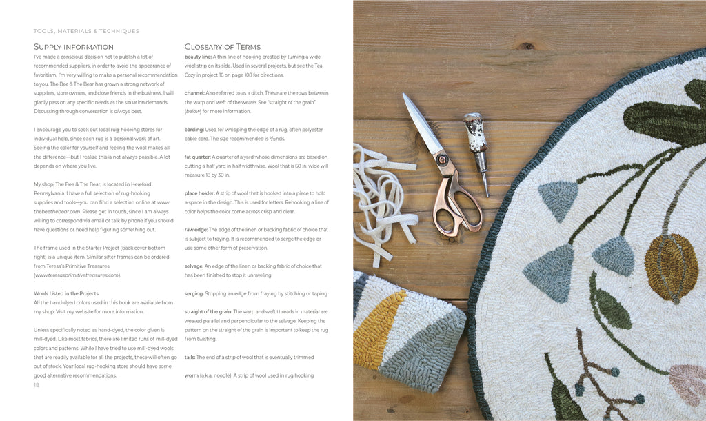 Katie Kriner has been rug hooking for over a decade. Her journey has blended creative designing, education, and business. She owns The Bee & The Bear, a rug-hooking shop where she focuses on teaching and sharing the amazing possibilities of modern rug hooking. thebeethebear.com