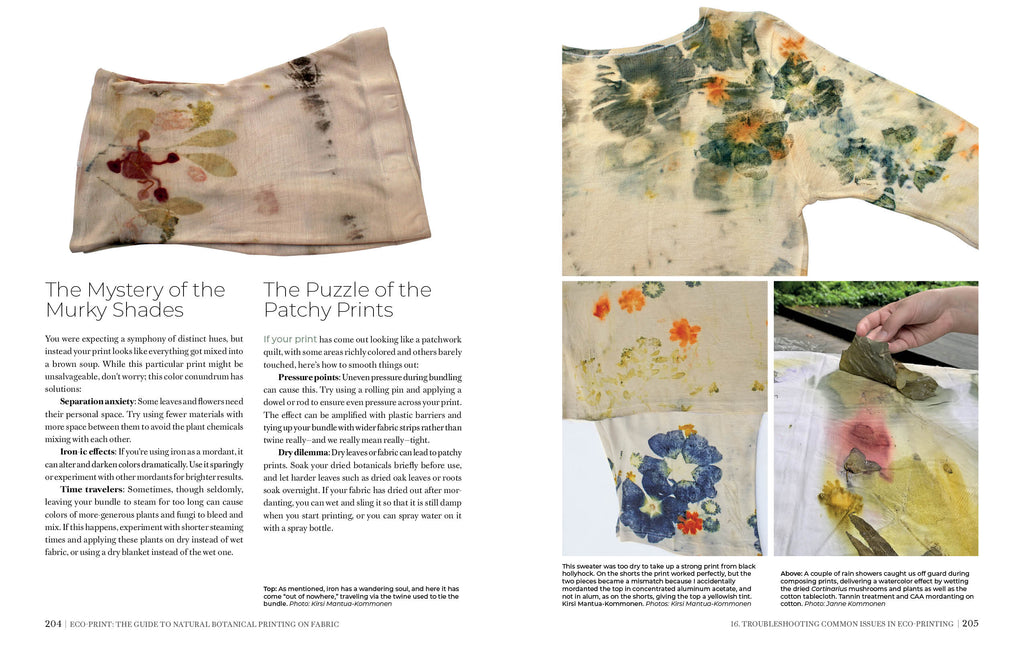 Kirsi Mantua-Kommonen is a color and natural dye researcher with a D.Sc. in business and economics. Kirsi’s work focuses on the functional properties of natural dyes. She teaches natural dyeing and eco-printing at universities and schools and gives workshops internationally. Her research includes analysis of innovative fungi uses, including for eco-printing.